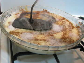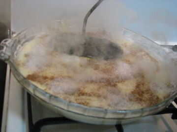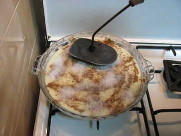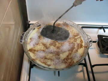 Cada ahora y después, limpiar la plancha con algo de agua caliente y algo que rascar los restos de caramelo. Añadir más azúcar, si algunas partes no son como marrón y brillante como gustaría ser. Esto está sobre él: después de una o dos horas, la leite-Creme está lista para ser disfrutado. Algunos dejan en la nevera durante un par de horas también. Personalmente, casi nunca llego a esperar y comer cuando está caliente - sin embargo es delicioso!