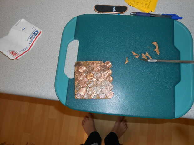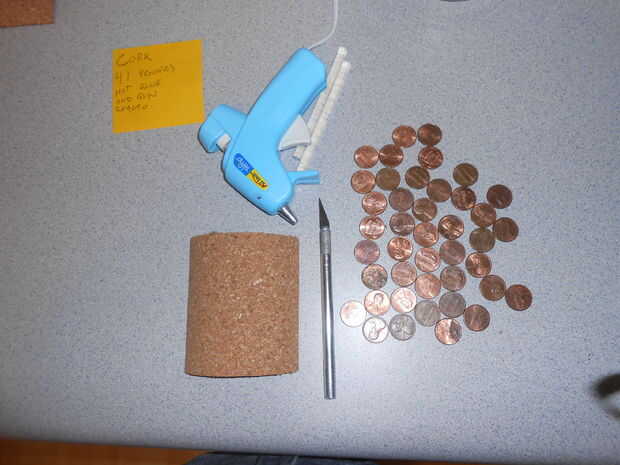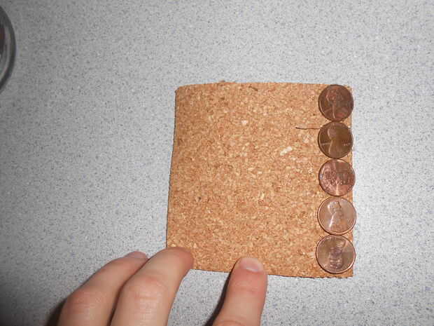 En primer lugar, cortar el corcho a una plaza de penny de pennys de 5 x 5, 25 en total.