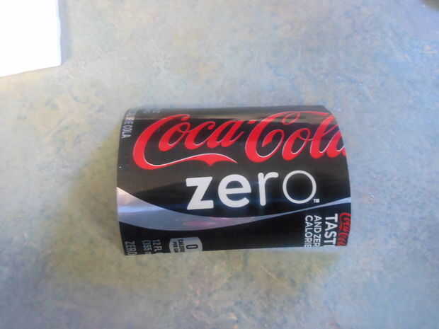 Entonces tomé mi cortador rotatorio y utilizado para cortar un 3½" por 3½" cuadrados de la parte delantera de la lata por lo que puede ser fácilmente reconocido. El resto del metal, de cada una puede, se puso en nuestra papelera de reciclaje de aluminio.