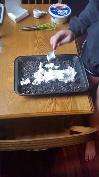 4. Extender uniformemente la mezcla de queso fresco crema látigo sobre la corteza de galleta