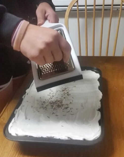- Rallar la barra de chocolate uniformemente sobre el postre