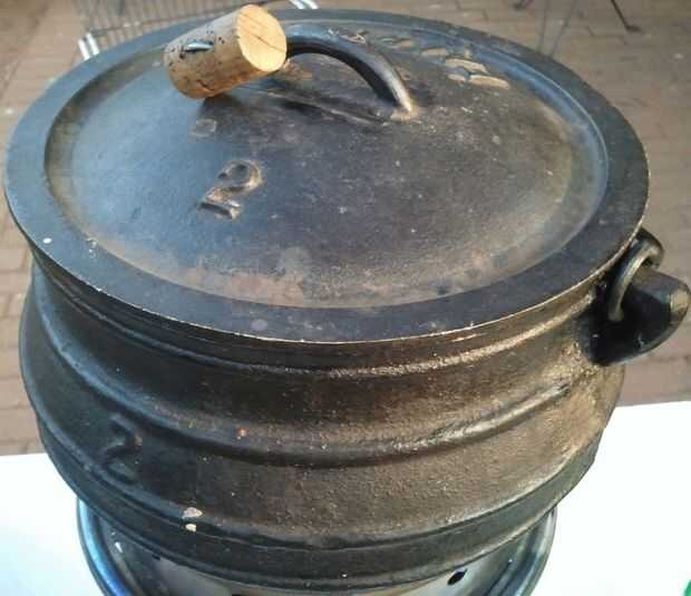 Vuelva a colocar la tapa y no levantarla hasta que esté listo para servir la comida. Escuchar al costado de la tapa. "potjie" debe estar hablando con usted. Se debería escuchar un poco, a hervir a fuego lento, una burbuja de la burbuja o el pop cada segundo o dos. Este es el sonido correcto que debe escuchar. Cualquier violento burbujeando o hirviendo medio el calor es demasiado alto y la carne obtendrá probablemente toque en la parte inferior. Durante este período, que es cerca de 2 horas, constantemente debe "escuchar" a la "potjie" "hablar" con usted a través del lado de la tapa y ajuste de la temperatura en consecuencia por adición o eliminación de calor en la parte inferior de la olla. Con un gas cocina gire hacia arriba o hacia abajo y con un fuego de carbón o madera quitar o añadir carbón a la parte inferior de la olla. Puede tomar hasta 10 minutos para responder a estos cambios asi que tengan paciencia. Nunca apague el calor completamente y luego ponerlo todo volumen más tarde. Esto arruinará el potjie.