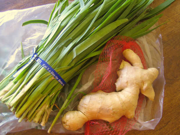 ** También conocido como ajo cebollino o puerro chino. Cebollino chino está en temporada durante el verano. El cebollino chino puede sustituirse con una cantidad equivalente de repollo. Jícamas también pueden añadirse al relleno para más crisis.