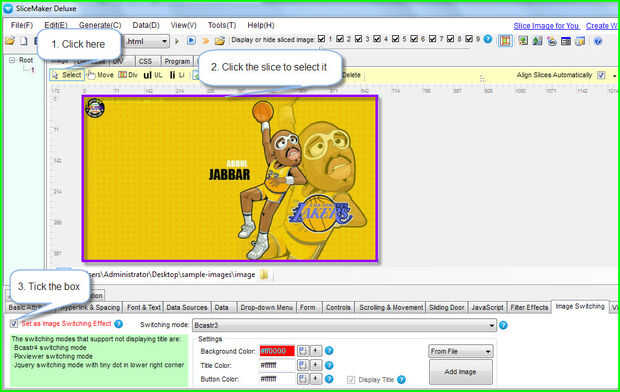 Nota: después de seleccionar el segmento, sólo tiene que marcar la casilla (como en la foto se muestra a continuación) para contar el software usted establecerá la rebanada como efecto de la conmutación de la imagen.