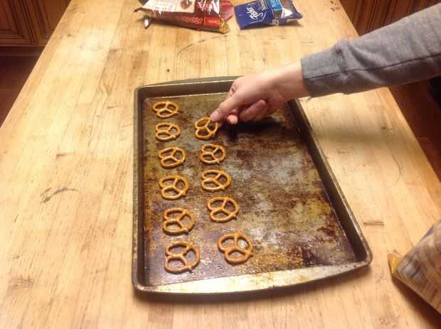 Coloque los pretzels en la bandeja para hornear. No hay ninguna distancia especial tienen que estar separados.