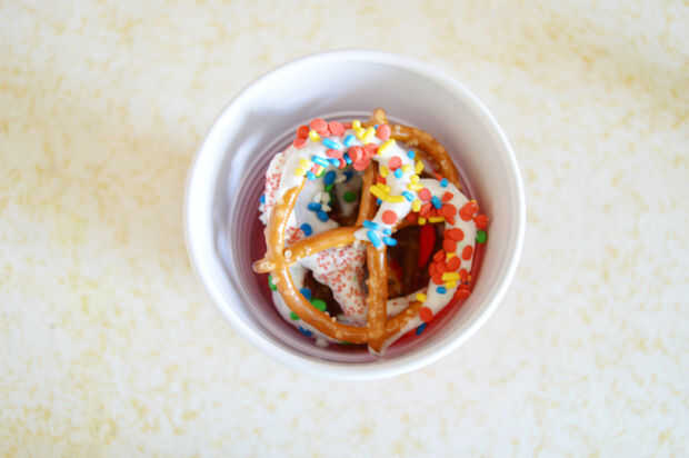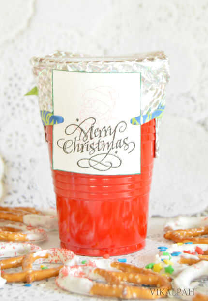 Si usted está planeando adelante a este regalo un cuadro lindo regalo y línea con papel de cera y arreglar los pretzels y envuélvalo con cinta y arco. O como dice el titulo, si lo haces en el último minuto, tomar una taza de la fiesta ya tiene y arreglar los pretzels y envolver con papel de seda. Para añadir un toque decorativo, atar una cinta alrededor de la taza con un mensajito de Navidad. Eso es todo! tu regalo comestible está ahora listo para regalo.