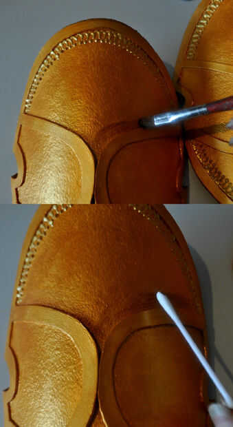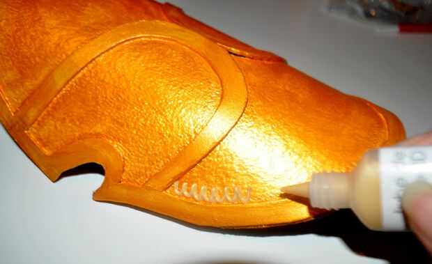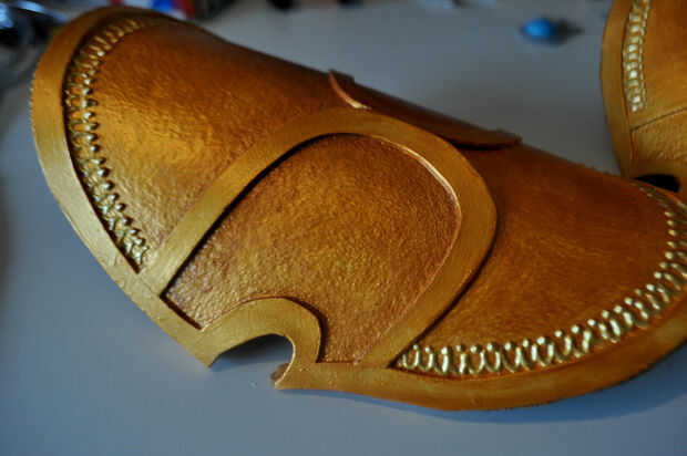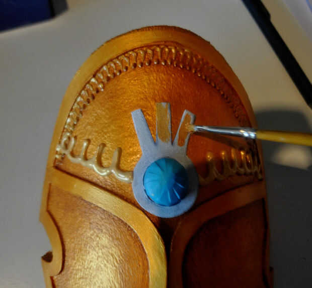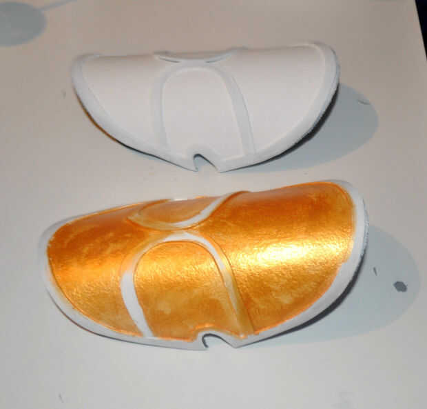 Pintar la hombrera en pintura acrílica de oro (2-3 capas para la pintura se aplica uniformemente).