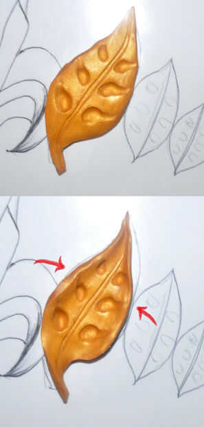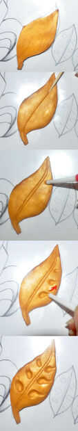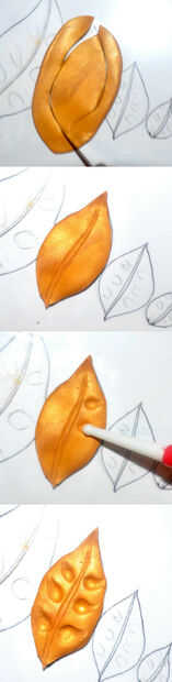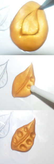 Una vez ligeramente su hecho esculpir la hoja, "curl" al lado de la hoja como se muestra en las fotos, para darle una forma más delicada.