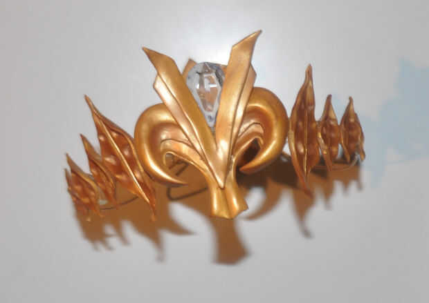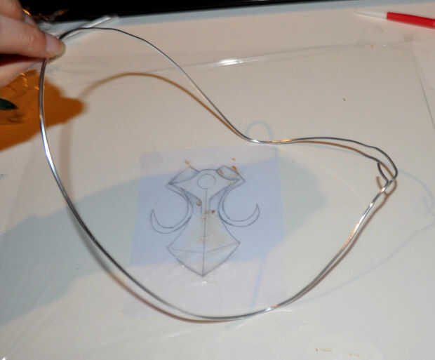 Usar arte alambre de aluminio (preferiblemente en color oro y bronce) para hacer una base para la corona, probarlo en y asegúrese de que encaja bien. Si vas a usar una peluca para este cosplay, puede que necesite probar con la peluca.