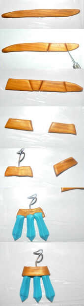 La arcilla del polímero del rodillo en una hoja y cortar varias forma trapezoidal, que se utilizarán para mantener las joyas.