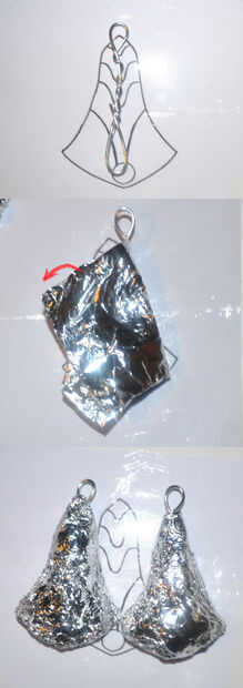 Hacer una estructura de base con el alambre de aluminio artesanal y hacer 2 formas de pera de hoja de lata.