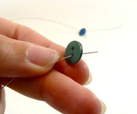 Desde aquí, usted estará trabajando con el extremo más largo del cable. Pasar a través de la parte posterior del botón siguiente (o agujero).