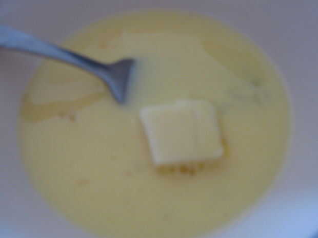 4. con el tenedor utilizado para batir el huevo y la leche, poner el queso del tazón de fuente pequeño gran cuenco.