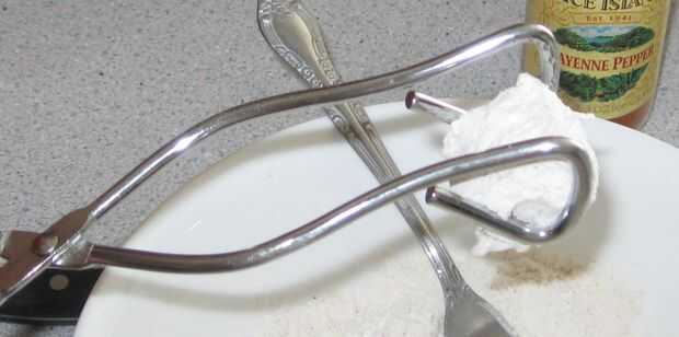1. con la pinza, agarra ligeramente una de las piezas de queso rebozado.