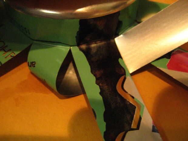 Voltear la lata alrededor. Es mucho más fácil hacerlo desde atrás.