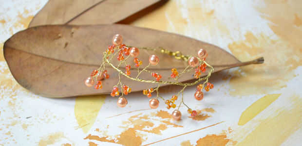 Como hacer pulsera de alambre de rama de árbol con perlas de naranja (6 / 6 paso)
