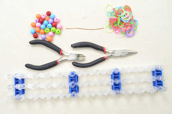 Como hacer pulsera de goma del arco iris con granos de acrílico (1 / 8 paso)