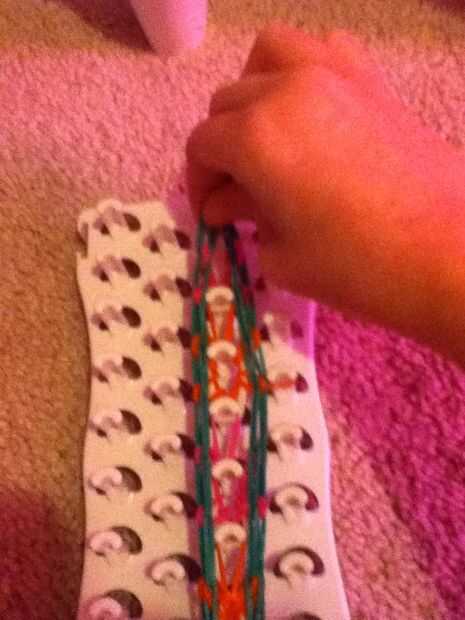 Como hacer pulsera de Starburst con telar del arco iris (9 / 12 paso)