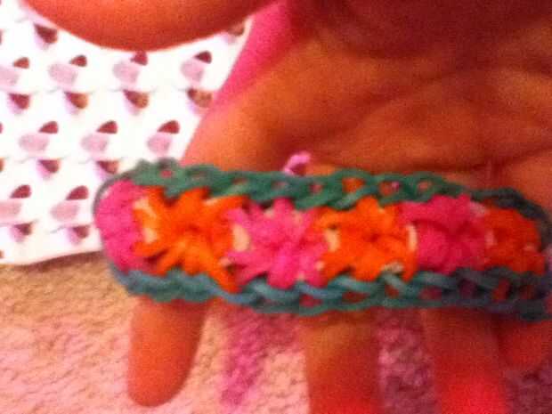 cómo hacer una pulsera de hibisco con telar del arco iris