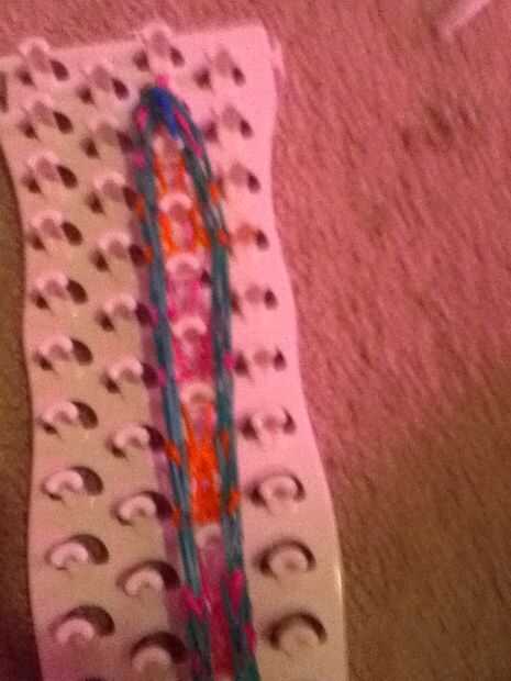 de hoy voy a mostrarte cómo hacer una pulsera de cable en el telar del arco iris es una pulsera de nivel intermediaria, pero a veces caen aparte pero no te enojes solo puede rehacerla solo te estoy dando este aviso ahora. cayó aparte en mí dos veces.