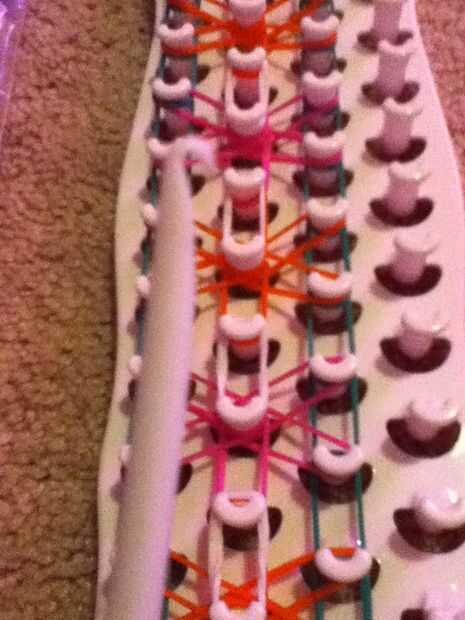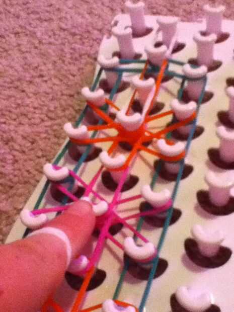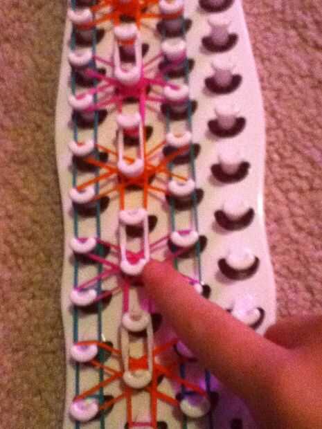 Como hacer pulsera de Starburst con telar del arco iris (3 / 12 paso)