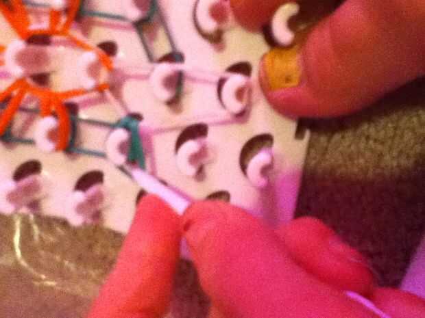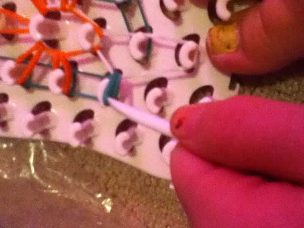 Como hacer pulsera de Starburst con telar del arco iris (6 / 12 paso)