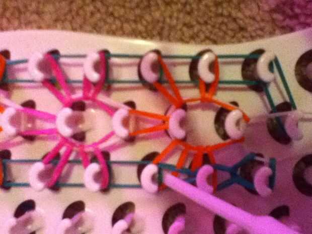Como hacer pulsera de Starburst con telar del arco iris (7 / 12 paso)