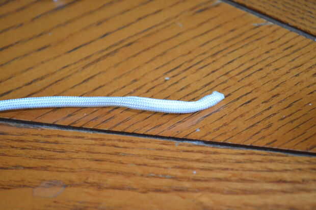 Si comenzaste con los hilos de núcleo mismo tamaño, entonces uno debe ahora ser un poco más largo que el otro. Tome el más corto y corte cerca del extremo de sus nudos y fundirse por lo que no se deshagan. Ahora deshaga el nudo en el extremo de la hebra de base más. Medir cerca de 1.5" en él y volver a casarse allí. La parte superior e inferior de tu pulsera deben buscar la misma ahora.