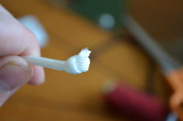 pulseras Paracord hacerlo con un Flatline o trazador (Flatline es un filamento de Paracord con la cadena de centro sacado y trenzado en la parte superior de un brazalete de Paracord y un trazador es un pedazo de micro paracord trenzado a lo largo de