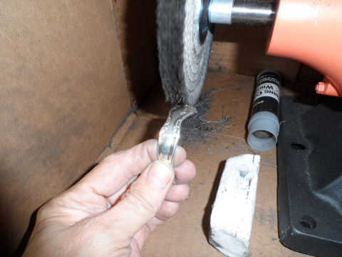 I buff y pulir las secciones con mi amoladora de banco de tamaño completo que pulido o pulido de ruedas conectados, o también utilizar un eje flexible de dremel con las ruedas que pulimentan fieltros.  Es bueno para entrar en los diseños y obtiene la parte trasera muy bien.