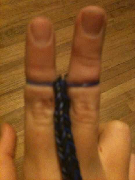 este es mi primer insuperable así que por favor comentario y dígame de lo trabajadoPaso 1: Cómo hacer una pulsera de goma sin telar Artículos:Bandas de gomaClip de S o CGanchoPaso 2: Poner una goma en el dedo y girar como un ocho entonces puso dos má