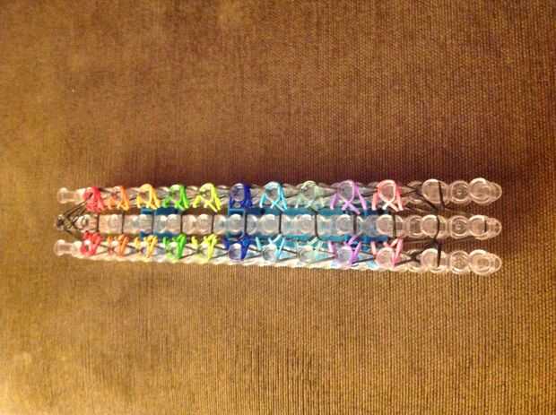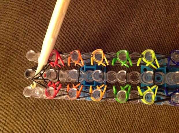 Cómo hacer pulseras de telar del arco iris o los anillos utilizando el patrón de diamante triple