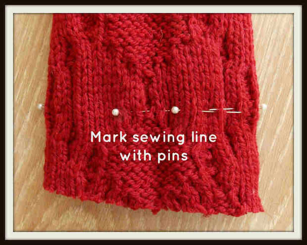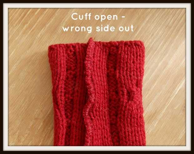 Todo lo que queda ahora es cortar el suéter exceso al lado de la costura. No corte demasiado cerca... 1/2 pulgadas o menos. Pliegue sobre la parte del manguito es el lado exterior (derecha) del suéter y tienes un brazalete de arranque.