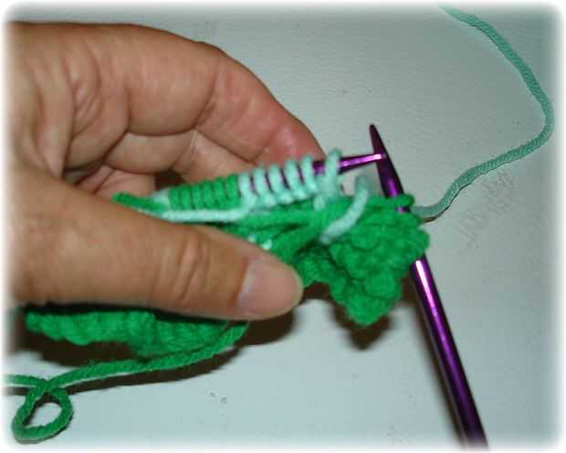 estos dos puntos son las partes más importantes de hacer punto. El punto es de importancia obvia, que la elección nombres. En Jersey, el lado punto luce como columnas de vs que se enclavija, cada v ser una puntada punto. Cuando se trabaja con agujas
