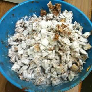 esta para chuparse los dedos, "Puppy Chow", es fácil de hacer y es amable. Este puede ser utilizado como un simple pasatiempo para el disfrute de amigos y familiares! Este delicioso aperitivo sólo dura unos 15 minutos para preparar y disfrutar s