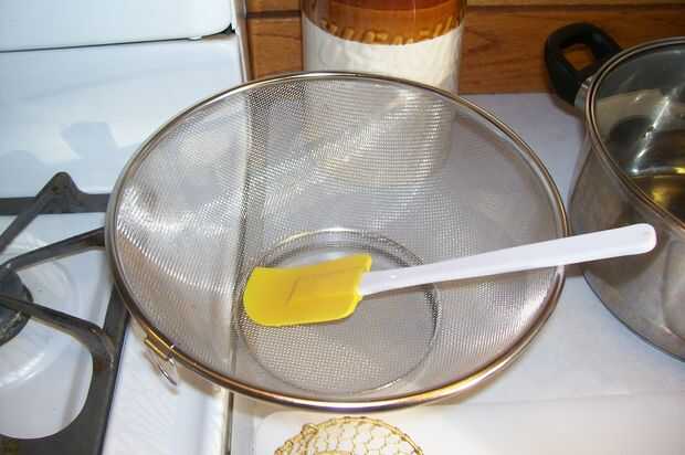 Colador de alambre con una espátula de goma