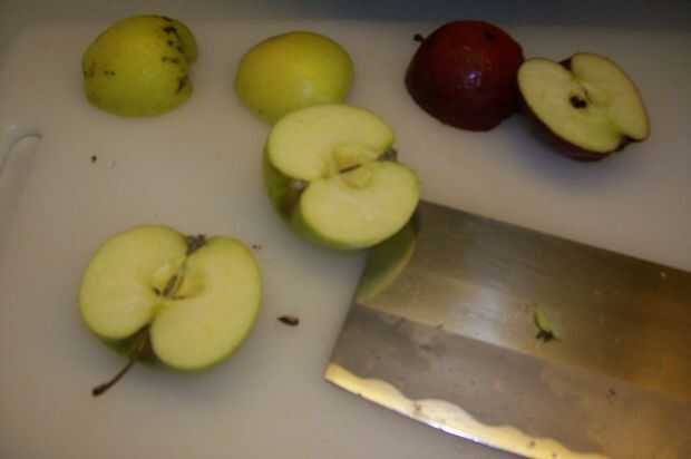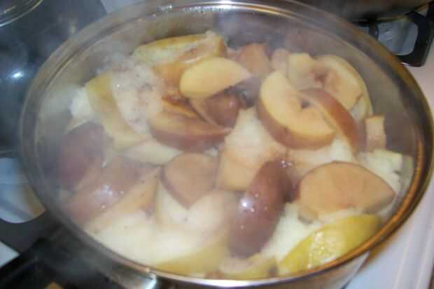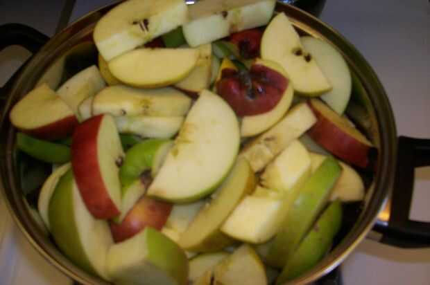 Cubierta y encienda el calor alto hasta que el agua hierva, luego gire a fuego lento hasta que las manzanas se cocinan muy suave. Dejarlos ir unos 45 minutos, pero el tiempo puede variar.