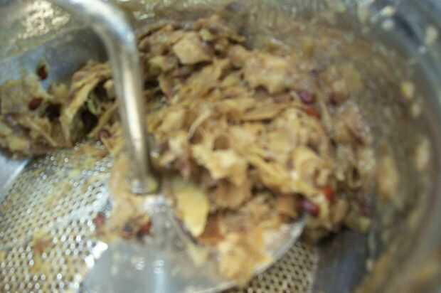 Si estás usando un colador, comenzar triturando la manzana suave a través del acoplamiento con la espátula de goma.