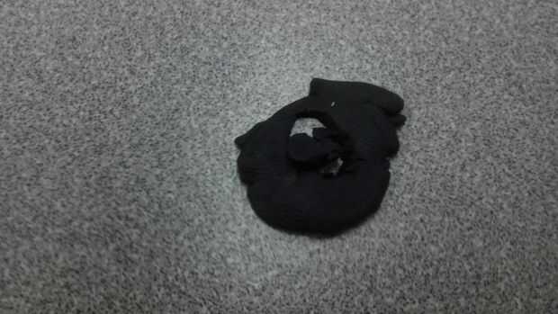 2. ahora con el barro negro, cortar un óvalo más pequeño que los ojos blancos que hicieron
