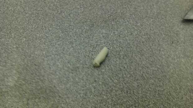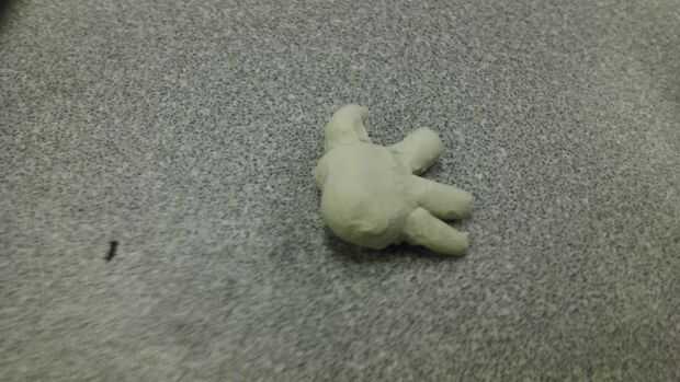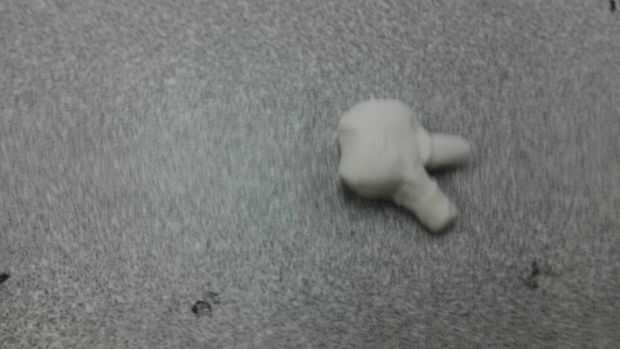 2. ahora con la arcilla blanca consigue una bolita de la misma (aprox. 0,5 pulgadas de ancho y aprox. 0,6 pulgadas de largo)