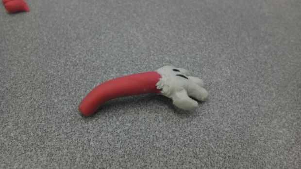 4. Añadir los dedos en cada mano y que pequeñas piezas de barro negro en la parte superior de la mano