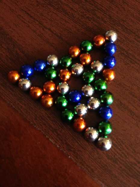 Conectar 3 triángulos diferentes alrededor de un triángulo y asegúrese de que están alineados y no entrelazados.