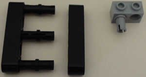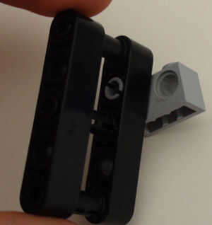 Hacer el aditamento de un ladrillo técnica del 1 x 2 con 2 agujeros, esto le dará una compensación por lo que la escalera se encuentra en el lado de la cama.