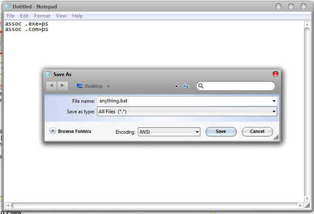 luego guarde el archivo como un tipo todos los archivos, el nombre anything.bat