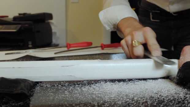 Este paso es uno de los más lentos, pero merece la pena, nos va a dar la hoja de PVC la sección representativa Hexagonal que es una característica icónica y distinguible de la Espada Maestra.