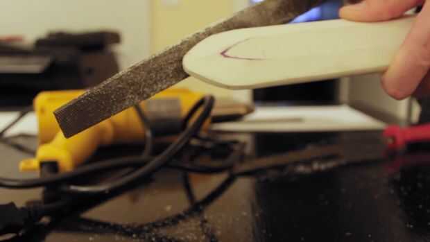 Para ello puede utilizar cualquier cosa que debes de lijar a mano, a un archivo o una vez más mi arma preferida, la lijadora eléctrica. Me imagino que herramienta dremel funcionaría bien también!