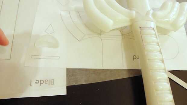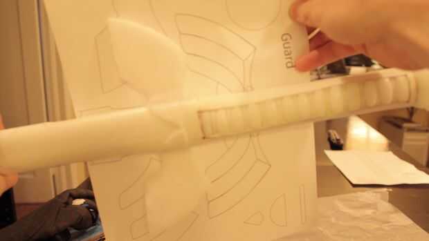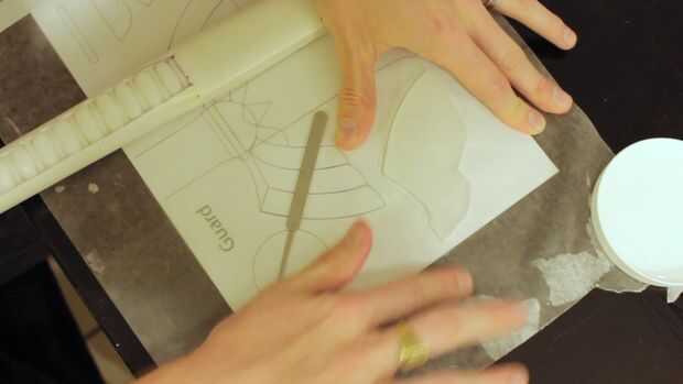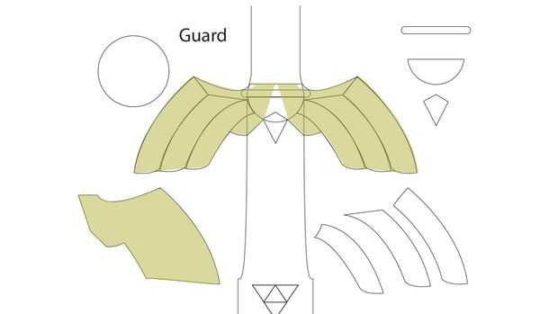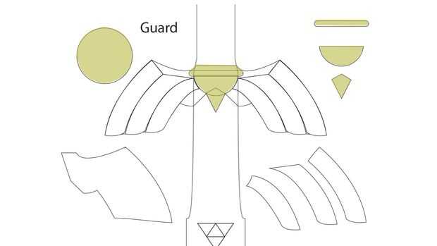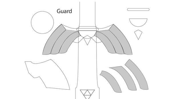 Al igual que el pomo se montar la guardia en piezas, a partir de la base de cada uno de los quillons y luego agregando las falanges. Luego terminar con la sección media. Listo, set, go!