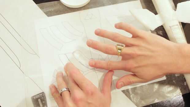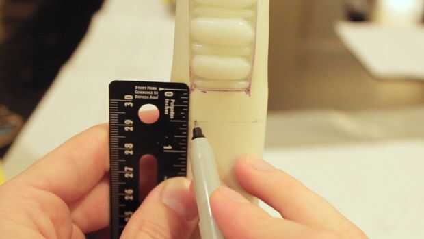 Asegúrese de dejar la capa base que muestra arriba y abajo las falanges según cómo se representa en la plantilla.