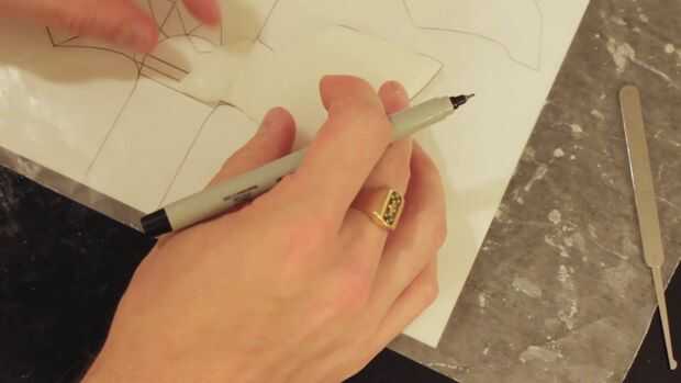 Una vez ha hecho dos de ellos, mantener en su lugar en la plantilla y dibuja una línea donde cada uno se cruza con la hoja.