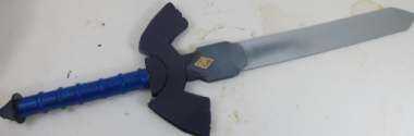 El lo único que queda es pintarlo. Pinté la plata de la hoja, la hoja de guarda púrpura y la sección central entre ellos un color gris. También pinté al trasero de la empuñadura de la espada púrpura. El mango es sin pintar ya es cinta aislante azul. No te olvides de pintar el poco oro de ornamento. Cuando haya terminado la pintura, dejar secar y terminar. Disfrute de su nueva Espada Maestra. DAH DHA DUN DAHHHHHHH! Sonido de apertura de pecho de Zelda!